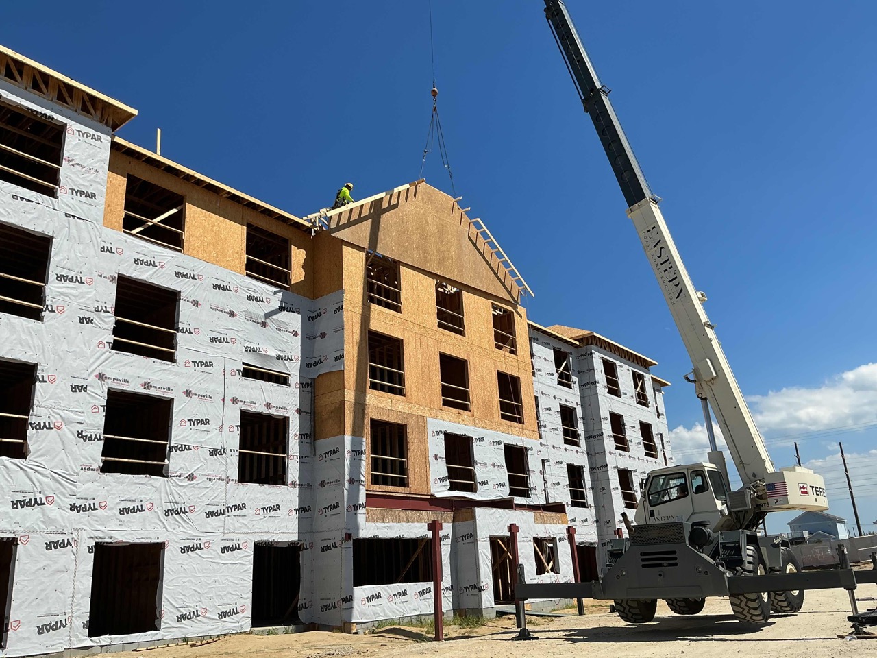 Additional work included offloading, placement, and installation of all exterior windows provided by the owner, along with associated flashings, sealants, and airtight foam to achieve watertight, energy-efficient assemblies. The subcontract scope also included furnishing and installing the complete roofing system and James Hardie exterior siding per design documents, as well as constructing attic catwalks and a roof access hatch as detailed in the architectural drawings. All necessary hoisting, scaffolding, and lifts were provided, and daily cleanup was maintained throughout the building interior, the site, and the adjacent streets to ensure safety and site organization throughout construction.